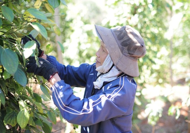 Người nông dân trồng tiêu thu lợi tốt khi giá tiêu tăng trong 2015. Ảnh: Thảo Nguyên.